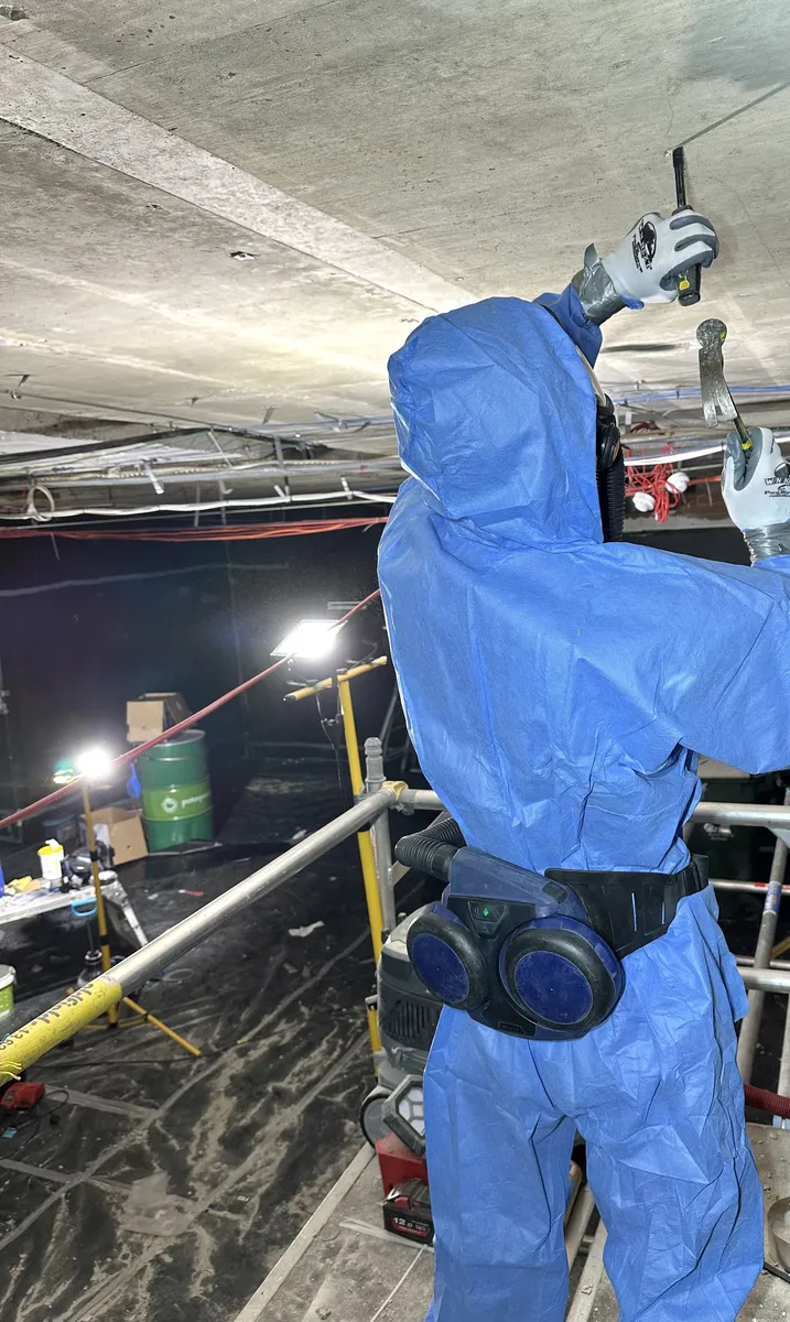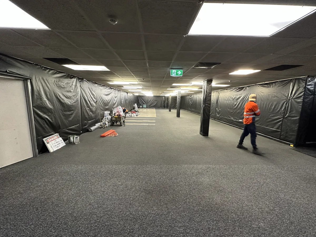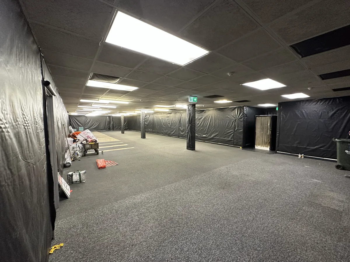 The project necessitated meticulous planning and collaboration with the University to facilitate the seamless occupation of the remaining half of the Library, thereby ensuring that university students were not adversely affected by any restrictions. The project encompassed demolition strip-out works, during which ceiling grids, tiles, and carpets were removed prior to the removal of asbestos flooring and asbestos-containing dust. Ultimately, the TSG were able to address the friable asbestos embedded in the concrete slab above, enabling the commencement of refurbishment works with confidence and assurance.